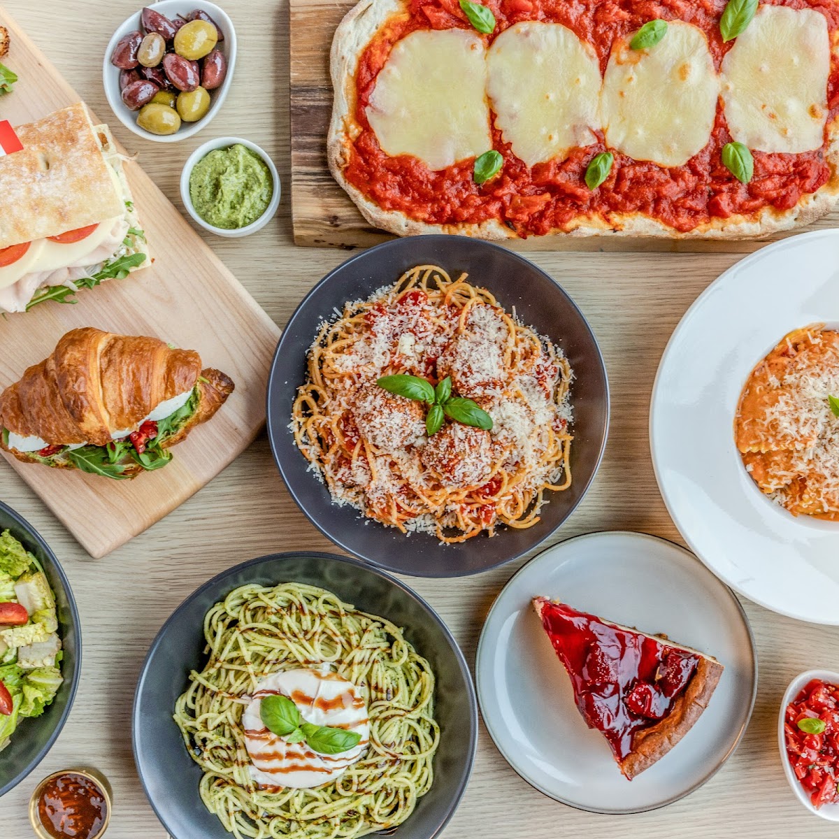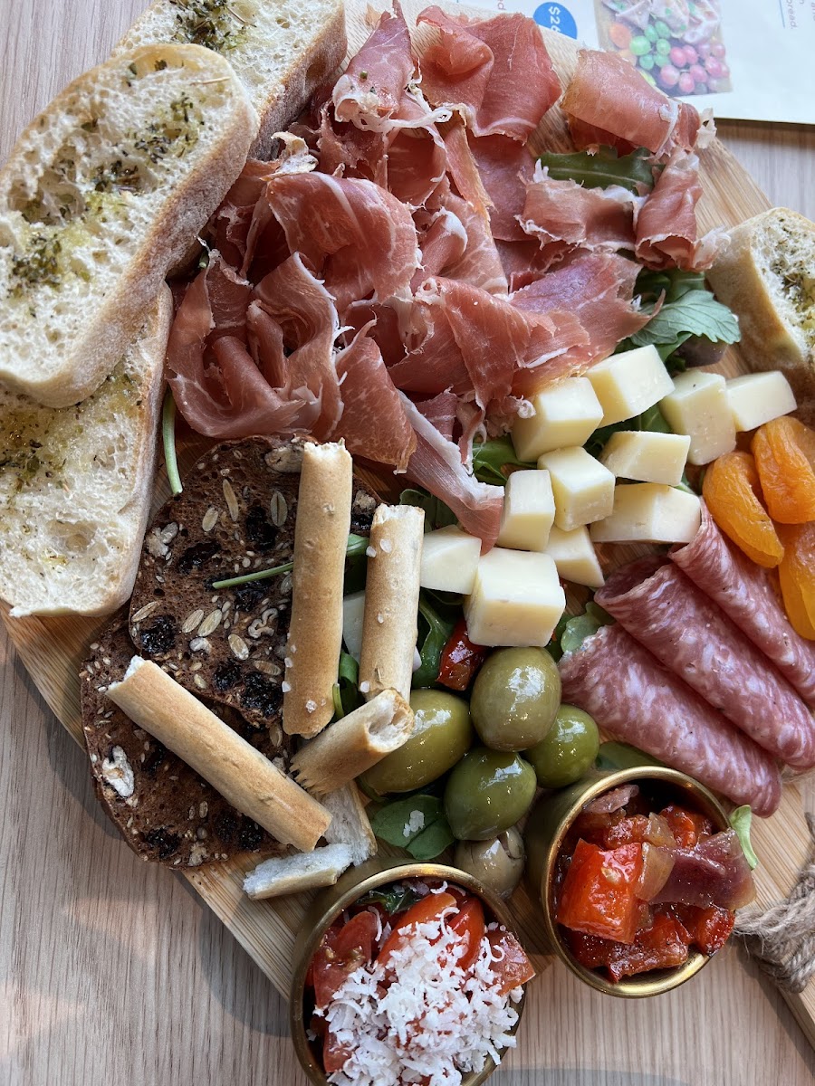 The atmosphere is warm and inviting without feeling overly formal — a balance that appeals to both locals looking for a laid-back spot and those wanting a bit of a refined café vibe. Soft lighting and clean, contemporary décor create an environment suited to everything from casual coffee dates to small group dinners. The place naturally draws a mixed crowd: people stopping by for espresso and pastries, couples enjoying an antipasto platter with wine, and groups sharing pasta and panini as part of a relaxed meal.