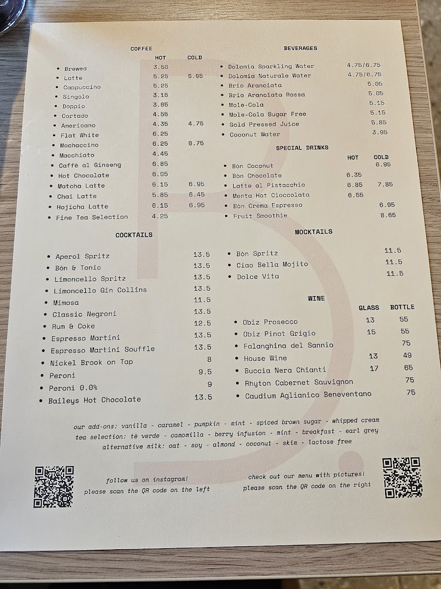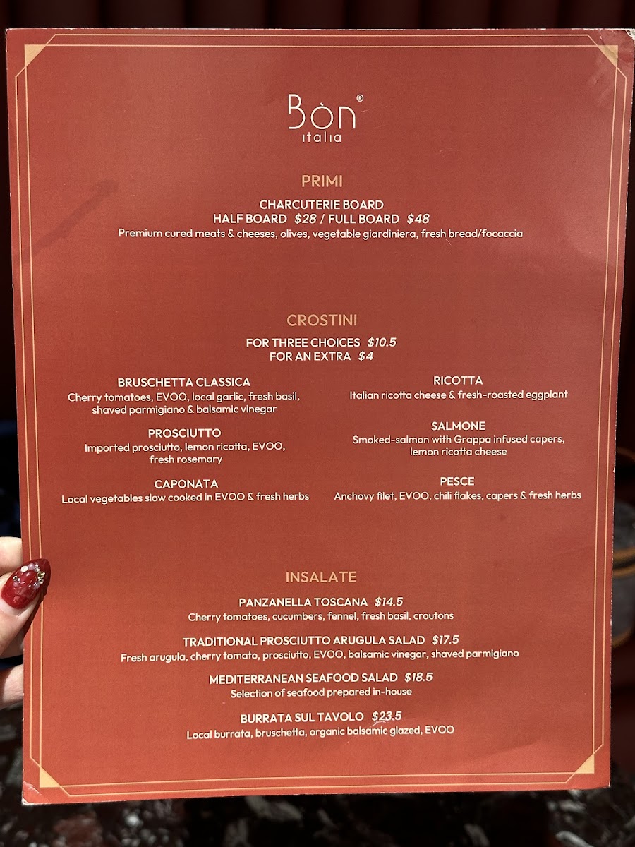 BÒN ITALIA TRATTORIA & CAFFÈ Menu